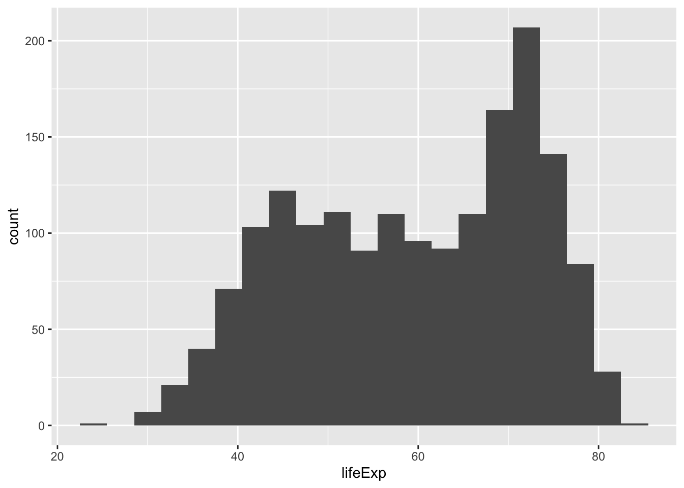 ggplot(gapminder, aes(x = lifeExp)) +
